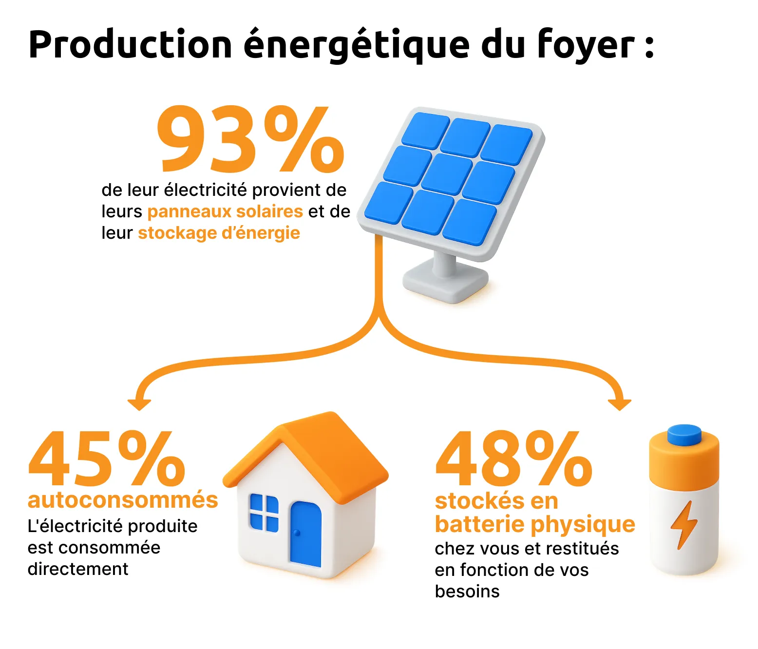 Stocké dans la batterie physique pour couvrir vos besoins le soir ou par temps couvert.